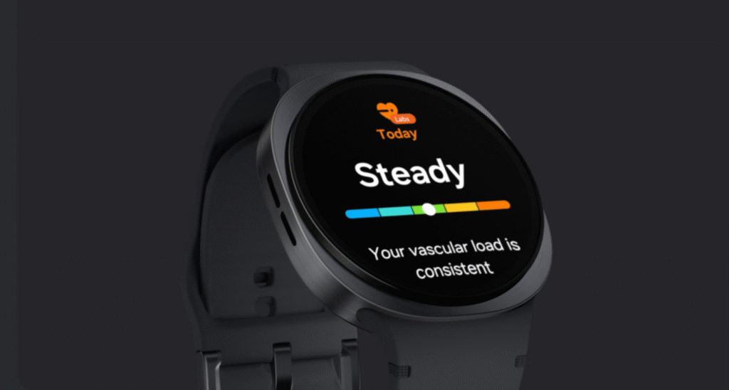 Vascular Load: A sophisticated sleep-tracking metric that monitors stress on the user’s vascular system overnight, incorporating daily activity and stress levels for a holistic view of cardiovascular wellness.