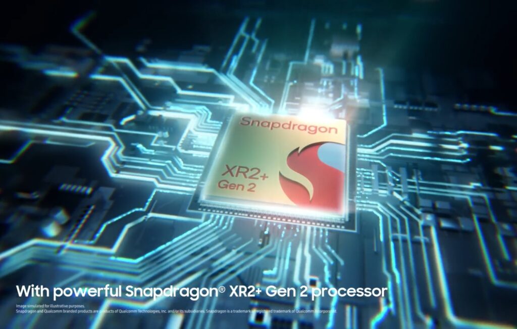 Powering this advanced hardware is the Qualcomm Snapdragon XR2+ Gen 2 Platform, a chipset specifically optimized for extended reality to handle the demanding requirements of high-resolution displays and sophisticated sensor processing. This processor is coupled with a generous 16GB of RAM and 256GB of internal storage.